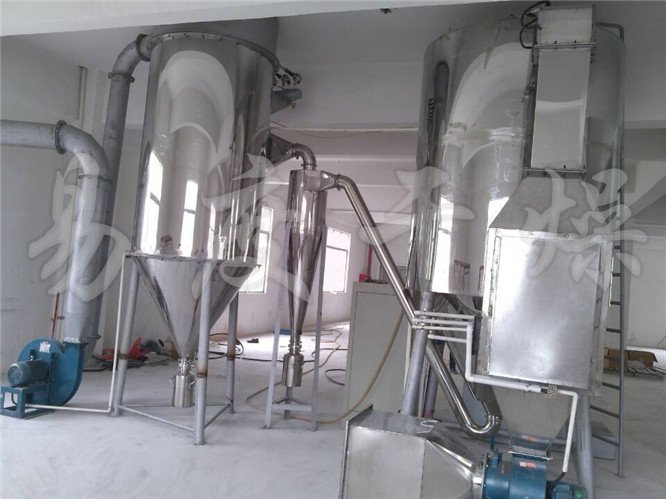 在发酵豆粕干燥工艺中采用到的XSG系统旋转闪蒸干燥机是我公司消化吸收,大胆采用国外先进技术、并结合国内发酵豆粕干燥的实际情况,自行开发设计的实用新型**产品。发酵豆粕干燥设备的生产工艺简述为:热空气由发酵豆粕干燥设备的主机底部进风口切向进入发酵豆粕干燥机主塔、在发酵豆粕干燥机主塔内形成螺旋形的上升高速旋转气流,同时根据不同的发酵豆粕干燥性质调整底部环隙大小,使风速处于**合适的状态。发酵豆粕经螺旋加料器直接进入发酵豆粕干燥机塔,在高速气流的冲击和带动下,迅速分散并随气流作高速旋转运动。对于比较大且潮湿的发酵豆粕颗粒团,高速气流不足以使之破碎并高速旋转,于是在重力作用下逐渐下落,当落到发酵豆粕干燥主机底部时被设置在底部的破碎装置强行破碎并微粒化,然后随高速气流一并旋转上升而完成干燥过程。为了使发酵豆粕的终水分达到极低同时不受初水分的波动而影响产品质量,在发酵豆粕干燥塔内设置多层旋流片,形成较为稳定的流态化床,同时旋流片亦起到保证发酵豆粕干燥所必须的停留时间和分级的作用。