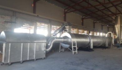 滚筒烘干炉的转筒是略带倾斜并能回转的圆筒体,湿物料从一端上部进入,干物料从另一端下部收集。热风从进料端或出料端进入,从另一端上部排出。