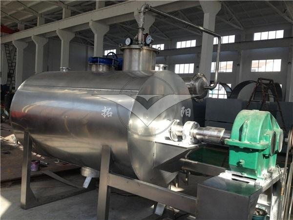 产品概述:真空耙式干燥机,本机是一种新颖卧式间歇式真空干燥设备,湿物料经传导蒸发,带有刮板搅拌器不断清除热面上的物料,并在容器内推移形成循环流,水份蒸发后由真空泵抽出。本机采用大面积夹层加热方式;传热面大;热效率高。 本机设置搅拌;使物料在筒内形成连续循环状态;进一步提高了物料受热的均匀度。 本机设置搅拌;从而可顺利进行浆状;膏状、糊状物料干燥。 特殊出料口设计,使出料口更加密封和不容易积料,并且出料...