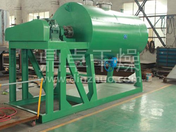 本机是一种新颖卧式间歇式真空干燥设备,湿物料经传导蒸发,带有刮板搅拌器不断清除热面上的物料,并在容器内推移形成循环流,水份蒸发后由真空泵抽出。