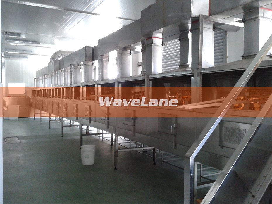 设备特点:1、该设备主要作用于花生、瓜子、豆类、坚果类的烘干与膨化,烘干与膨化可连续作业,也可分开作业;2、设备总功率220kW,可24小时连续开机,干燥作业每小时提水大于220kg,膨化作业日产量达30吨;3、微波烘干与膨化的特点是作用迅速,色泽保持良好,与炒货的区别更在于微波产品不易上火,营养保持良好;4、微波干燥兼顾灭菌,微波灭菌既有热效应,又有生物效应,能够抑制微生物新陈代谢达到生物效应的灭菌作用,效果良好。