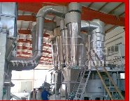 热空气由进风口以适宜的喷动速度从干燥机底部进入搅拌粉碎干燥室,对物料强烈的剪切、吹浮、旋转作用,于是物料受到离心、剪切、碰撞、磨擦而被微粒化,强化了传质传热。在干燥机底部,较大较湿颗粒团在搅拌器的作用下被机械破碎,湿含量较低、颗粒度较小的颗粒被旋转气流夹带上升,在上升的过程中进一步干燥,由于气固相作旋转流动,固相惯性大于气相,固气两相间的相对速度较大,强化两相间的传热效果,所以该机干燥强度高。