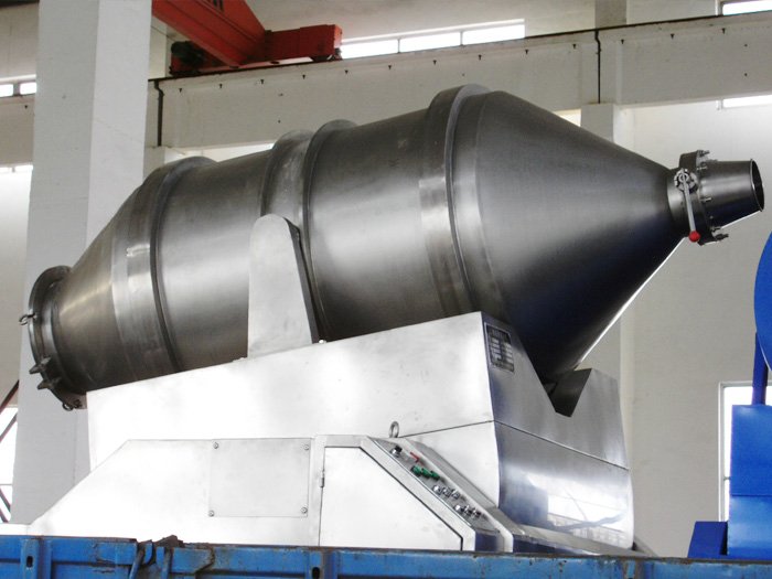 EYH Series Two Dimensional Mixer Principle Two dimensional mixer mainly consists of three big parts namely, rotating cylinder, swinging rack and frame. The rotating cylinder lies on the swinging rack, supported by four wheels and its axial fixation is done by two stop wheels. Two of our wheels are driven by rotating power system to made the cylinder rotate. The swinging rack is driven by a set of crankshaft swinging bar which is mounted on the frame and the swinging rack is supported on the frame.