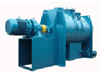 该机由传动机械,卧式筒体,犁刀飞刀组等四部分组成。旋转的飞刀强烈抛散,在犁刀和飞刀的复合作用下,从而在极短的时间内达到均匀混合。传动部分犁刀轴的转动是由电机(主电机)通过摆线针轮行星减速机变速,然后由联轴器带动。飞刀电机(付电机)直接驱动。卧式筒体由钢板卷制而成,各联接处均有密封要求,因而可保证设备能在微压条件下工作。