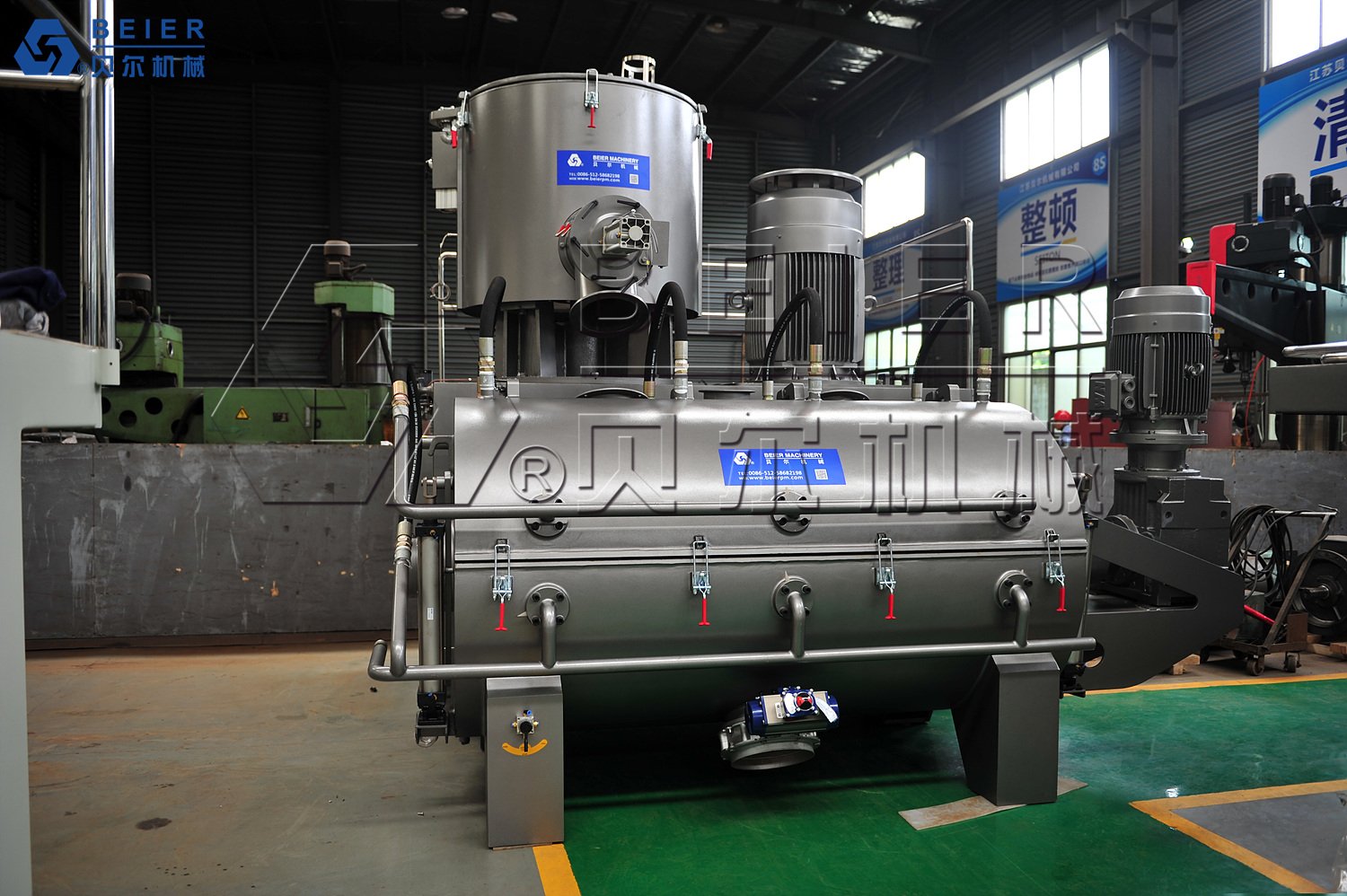 该机组是引进消化并吸收国外先进技术研制而成,混合物料采用负压混合原理。电器仪表全部采用进口**电器,并可采用PLC程控电脑控制。具有自动化程度高,混合速度快,其浆叶为精密不锈钢压力铸造,且通过动静平衡测试。特别是冷却机浆叶采用国外先进的螺旋搅拌结构,整个容器没有死角,具有冷却速度快,出料干净,混合效果已达到国外**。