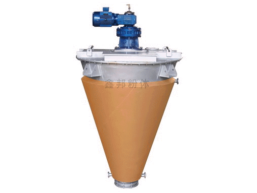 DSH系列混合机筒内两只非对称螺旋自转将物料向上提升,转臂慢速公转运动;使螺旋外的物料,不同程度进入螺柱,从而达到全圆周方位物料的不断更新扩散,被提到上部的两股物料再向中心凹穴汇合,形成一股向下的物料流,补充了底部的空缺,从而形成对流循环的三重混合效果。混合机两非对称螺旋的快速自转,物料向上提升、形成两股非对称沿筒臂由下向上的螺旋物料流。转臂带动的螺旋公转运动,使螺旋外的物料不同程度进入螺柱包络线内,一部分物料被错位提升,另一部分物料被抛出螺柱,从而达到全圆周方位物料的不断更新扩散,被提到上部的两股物料再向中心凹穴汇合,形成一股向下的物料流,补充了底部的空穴,从而形成对流循环。由于上述运动的复合,物料在较短时间内获得了均匀混合,混合程度较高。