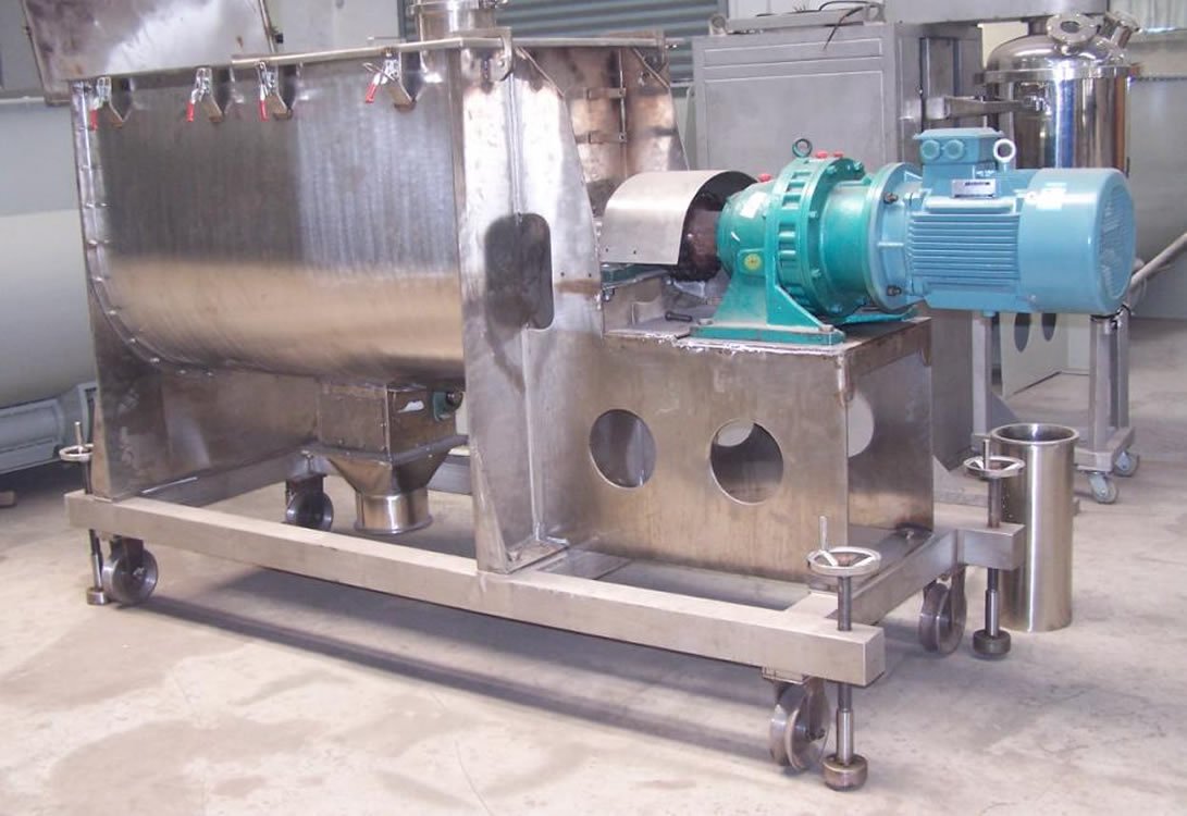 螺带混合机介绍:螺带混合机一般用于粘性或有凝聚性的粉粒体的混合以及粉粒体中添加液体及糊状物料的混合,同时由于粘性物料清洗困难的特点,适用于产量大、不经常更换品种的场合混合。