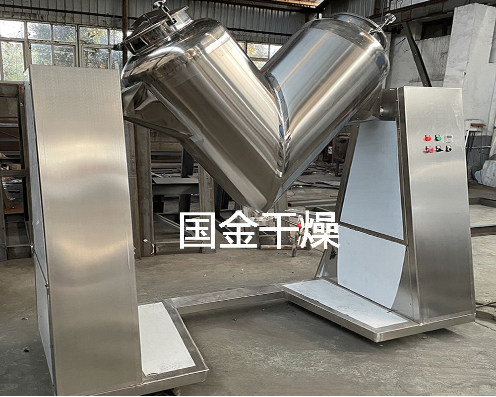 1. 为不锈钢材质,采用V型不对称料简进行混料,混合无死角,均匀效率高,该机结构合理,操作方便,料简采
