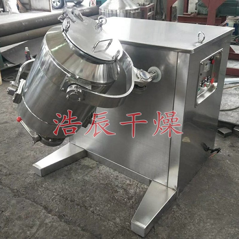 本机混合筒多方向运动,物料无离心力作用,无比重偏析及分层,积聚现象各组分可有特殊的重量比,混合率达99.9%以上,是目前各种混合机中较理想产品。