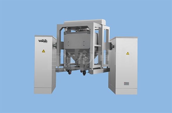 2.回转体(混合料斗)一 对称平面,与回转轴线成30°夹角,混合料斗中的物料随回转体翻动外,同时沿斗壁做切向运动,产生强烈的翻转和高速的切向运动,从而达到Z佳的混合效果。