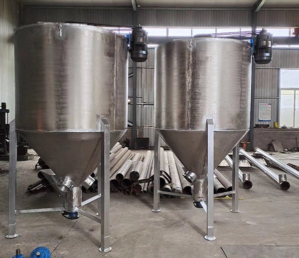 立式混合机的工作原理是混合机筒内两只非对称螺旋自转将物料向上提升,转臂慢速公转运动;使螺旋外的物料,不同程度进入螺柱,从而达到全圆周方位物料的不断更新扩散,被提到上部的两股物料再向中心凹穴汇合,形成一股向下的物料流,补充了底部的空缺,从而形成对流循环的三重混合效果。