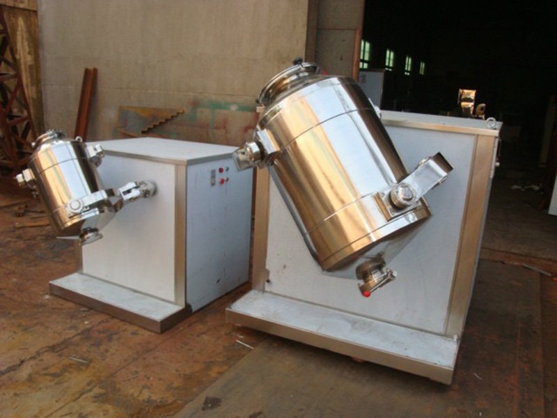 结构:该机由机座、传动系统、电器控制系统、多向运动机构、混合桶等部件组成。与物料直接接触的混合桶采用不锈钢材料制造,桶体内外壁均经镜面抛光。