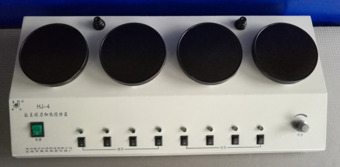 型号HJ-4(四联) 加热功率 200Wx4 调速范围(转/分) 起动-1600 工作台面(mm)Φ120x4 外型尺寸(mm)560x170x130 备注 控温:室温-100℃