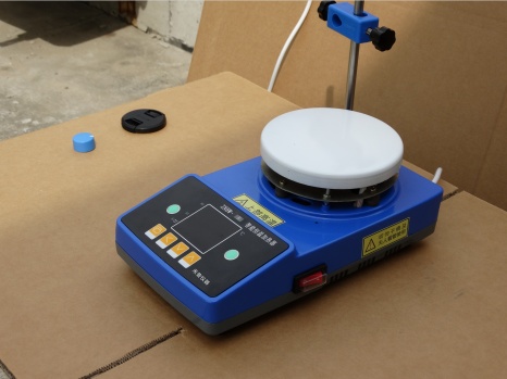 1.将立杆固定在搅拌器后上方螺丝孔内,调整好十字夹高度,用万夹将 反应瓶固定好,插入电源~220V,打开开关。
