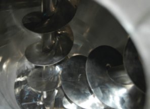 非对称螺旋自转将物料向上提升,转臂慢速公转运动;使螺旋外的物料,不同程度进入螺柱,从而达到全圆周方位物料的不断更新扩散,被提到上部的两股物料再向中心凹穴汇合,形成一股向下的物料流,补充了底部的空缺,从而形成对流循环的三重混合效果