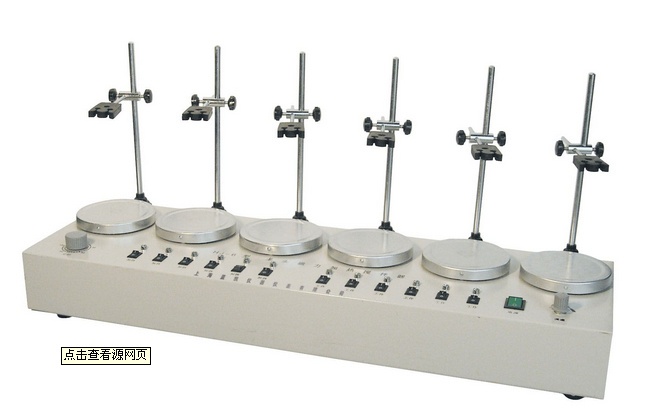 HJ-6六联磁力加热搅拌器产品说明:HJ-6六联磁力加热搅拌器是在本所研制生产的磁力加热搅拌器的基础上改进而成,六联可同时搅拌或加热,也可N联搅拌或加热;采用优质直流电机,噪音小,无级调速,运转平稳;全封闭式加热盘可作辅助加热之用;设有机械定时;选用聚四氟乙烯和优质磁钢精制成的搅拌子,耐高温、耐磨、耐化学腐蚀、磁性强。HJ-6六联磁力加热搅拌器能在较广的速度范围内对液体溶液进行精密稳定的搅拌或作对比试验,特别适合小体积的样品的加热搅拌,操作简便,是科研、院校等企事业单位实验室理想的搅拌工具。