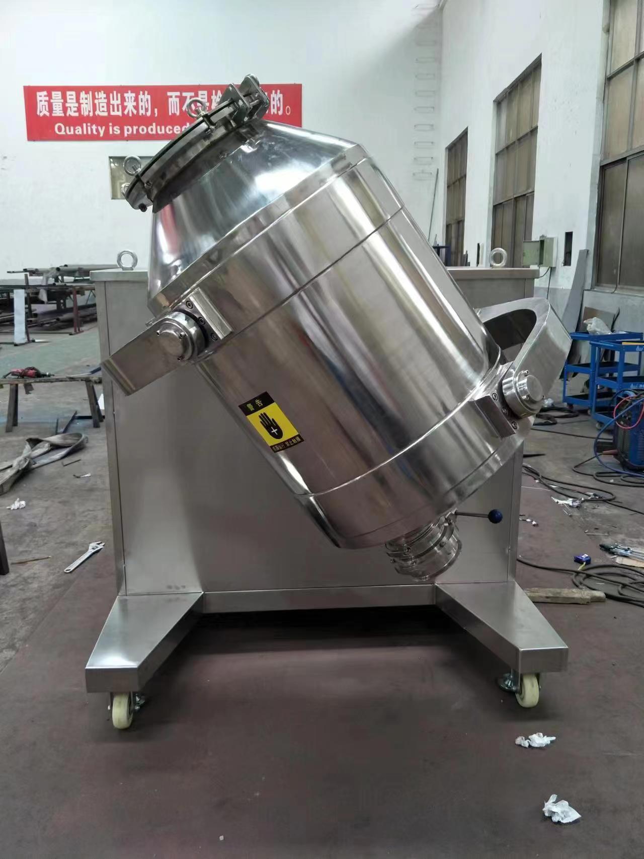 • 混料器具有三维运动,从而使物料在流动,剪切,平移,扩散的作用下,使其由集聚到分散状态并完成互相掺杂的过程,保证了物料混合均匀,均匀度可达999%以上。普通混合机,物科在容器内只作分合的简单运动,效率氏,混合质量差;