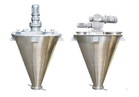混合机根据物料性质、启动方式、以及工艺要求配置不同功率、不同能力的驱动装置。双螺旋锥形混合机装载专用的双输出减速机组合箱,采用摆线针轮、齿轮、蜗轮蜗杆形式组合定制而成。