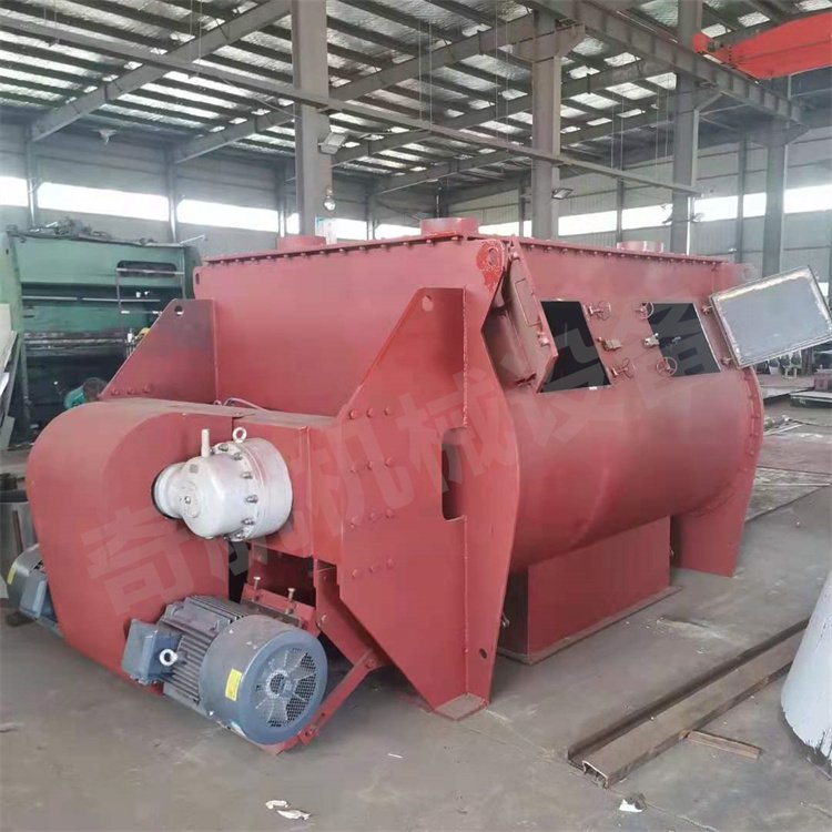 无重力混合机设备描述:混合机采用卧式W型筒体,内设两组反向旋转的平行轴,两轴上装有相反角度的浆叶(称双卧轴),运行时带动物料达到抛物线的高点使物料瞬间失重,称之为无重力点,在该点不同粒径、不同密度的物料实现均匀混合,亦称无重力双轴浆叶混合机,两侧的物料即反向运动,物料相互落入对面区域内,中间部位形成对流,从而确保物料径向、环向、轴向三向抛洒运动,形成复合循环,迅速达到均匀混合,无重力混合机设计混合时间1~3分钟,混合后由底部出料。