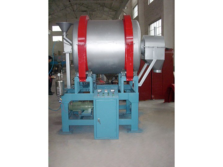 增湿混料机是用于粉状物料与液体的连续均匀混合。该机采用连续注入粉料、连续注入雾化液体到滚筒内计量加料方法实现对物料的初步混合;滚筒内一组高速旋转的叶片再对物料进行二次搅拌混合;滚筒旋转带动物料翻动对物料进行三次翻动混合。在这三种混合成效的作用下,物料被很快混合好。