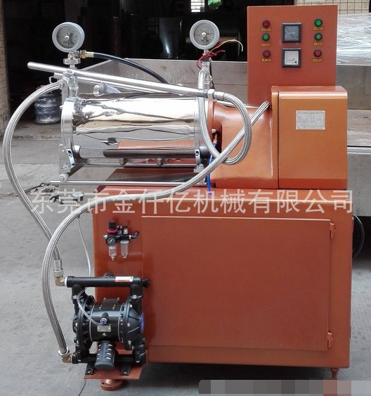 10、气动隔膜泵或齿轮泵将经过分散,润湿处理的固液相混合物料输入筒体内,物料和筒体内的研磨介质一起高速旋转的分散器组所搅动,使物料中固体颗粒和研磨介质间产生强烈的碰撞,剪切,在短时间内达到物料颗粒的磨细和分散聚集的目的,研磨分散物料效果,效率**,是生产高档油漆,油墨,燃料的产品的设备