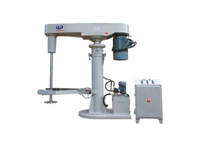 2.接通电源,起动油泵电机,使机架上升到适当的高度,然后将装入浆料的容器放在分散机盘的下方,将机架徐徐下降,使分散盘插入容器内适当深度位置,待下降停止后,即可启动主电机,对容器内的浆料进行搅拌混合和分散。