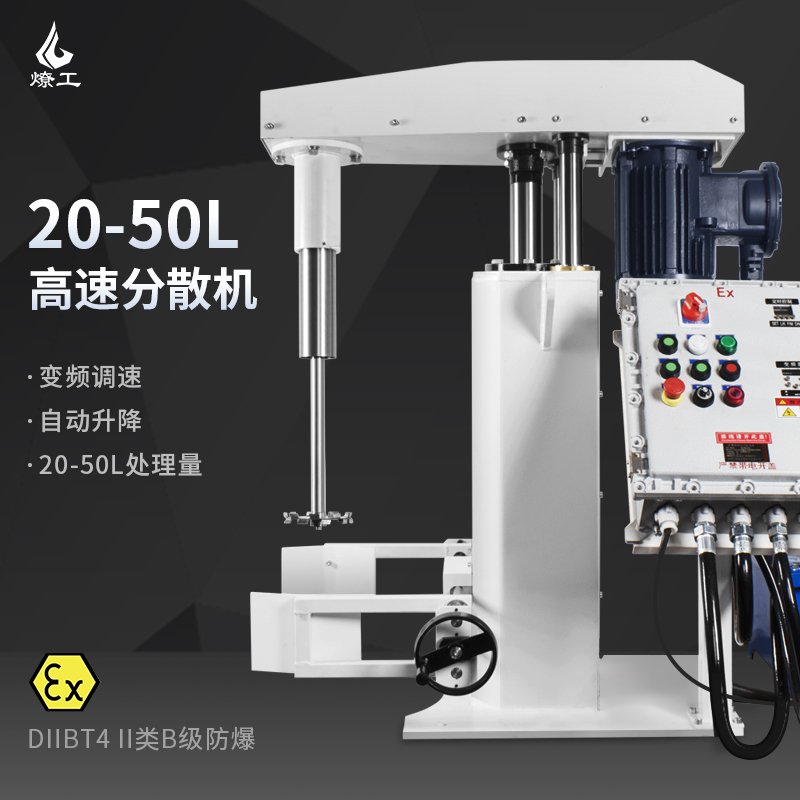 变频调速l自动升降l20-50L处理量3000rpm高速搅拌运转平稳安全节能一我们对功率和转速持续优化,高速混合不同原料