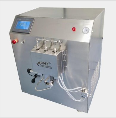 ◆ 产能:100升/小时;连续稳定流量(电驱动型号设备,其产量不受均质压力影响)。