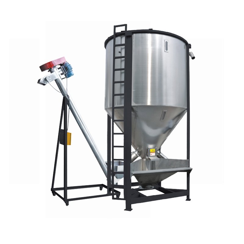 立式搅拌机特点:1.螺旋循环搅拌使得原料混合更加均匀、快速2.适用于各种塑料原料与色母的混合搅拌,新、旧料及色母混合则效果更佳3.设备与原料所接触部分的材料皆为不锈钢制作,清洗容易,避免锈蚀4.设有电控安全保护装置,确保操作安全5.可定制烘干型