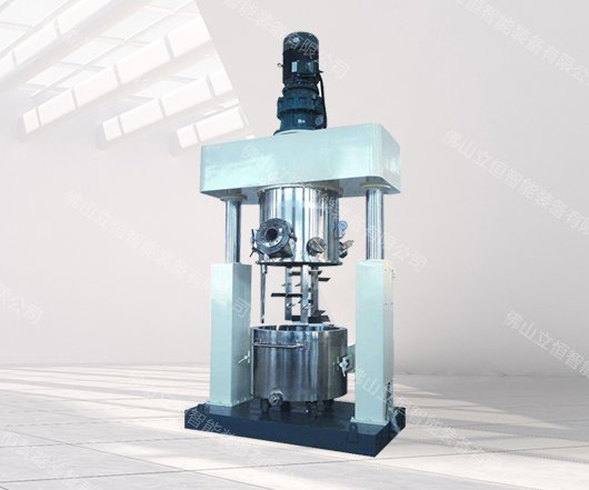 行星搅拌机是一种新型高效无死点混合搅拌设备,它具有新颖的搅拌形式,釜内有两根或3根多层浆叶搅拌器和1~2个自动刮刀,搅拌器在绕釜体轴线公转的同时,又以不同的转速绕自身轴线高速自转,使物料在釜体内作复杂的运动。