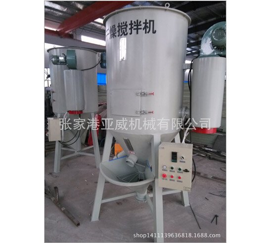 > 由于原料在桶内不停的翻滚,热风不停的从中心输送从而达到混合与干燥的同步进行,节省时间和能源。如不需干燥,只要关掉干燥开关,仅使用混合机功能,本机亦适用于粒料与粉碎料、色母粒的混合。