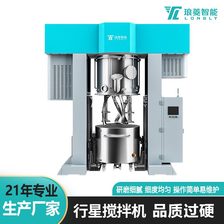行星搅拌机是结合了传统双行星混合机和高速分散机的原理、组成的一种全能的新机型。传动部分由低速搅拌部件和高速分散部件组成。低速搅拌部件采用行星齿轮传动,搅拌桨在公转时也自传,使物料上下及四周运动,从而在较短的时间内达到理想的混合效果。