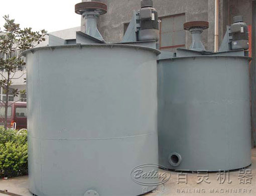 搅拌桶是由电动机三角带传动代动叶轮旋转,使药物和矿浆充分混合均匀,增加药剂作用反应时间强化药物反应质量的必要设备。适用于各种金属矿,主要用于浮选前的搅拌,也可用于其他非金属矿物的搅拌,适用于浓度不大于30%(按重量计算)粒度小于1mm的矿浆。