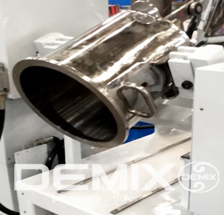料桶翻转型:简称翻桶机。通常使用在搅拌主机化学反应或材料混合后的出料过程,适合流动性好的粉体或压料机挤不出的浆料等。本机通过电控装置控制液压升降搅拌桶和电机翻转搅拌桶,使搅拌桶升降到所需的高度和翻转所需的角度,物料在重力作用下自动流出或使用外力挖出物料。