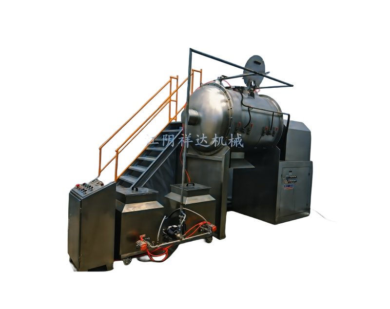 对需要固——液混合的物料,混合液体通过喷液装置均匀喷洒在筒体内运动的物料上。