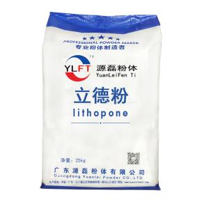 “YLFT”牌立德粉又称为锌钡白,是一种白色粉末,是硫化锌及硫酸钡的混合物。相对密度4.136-4.39。不溶于水,遇酸易分解产生硫化氢气体。与硫化氢和碱不起反应。它耐热性良好,可改善耐候性,防藻,降低成本以及其具有优异的遮蔽力的白度。在空气中易氧化,受潮后结块。洁白度、遮盖力较强。含硫化锌愈多,遮盖力愈强,品质也愈高。由硫酸锌和硫化钡溶液起反应而得的沉淀,经过滤、干燥及粉碎后,再煅烧至红热,倾入水中急冷而得。遮盖力次于钛白,不耐浓硫酸酸。
