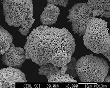 我们的超细铜粉由化学法制备,呈球形或类球形,单个颗粒的SEM显示粉末呈多孔状。基于以上两个特征,我们的超细铜粉不仅具备和雾化铜粉相同的流动性,同时也具备化学法制备的铜粉所具有的高活性。不管是在催化剂还是在粉末冶金领域,我们的铜粉都具备雾化铜粉和电解铜粉不可替代的优势。