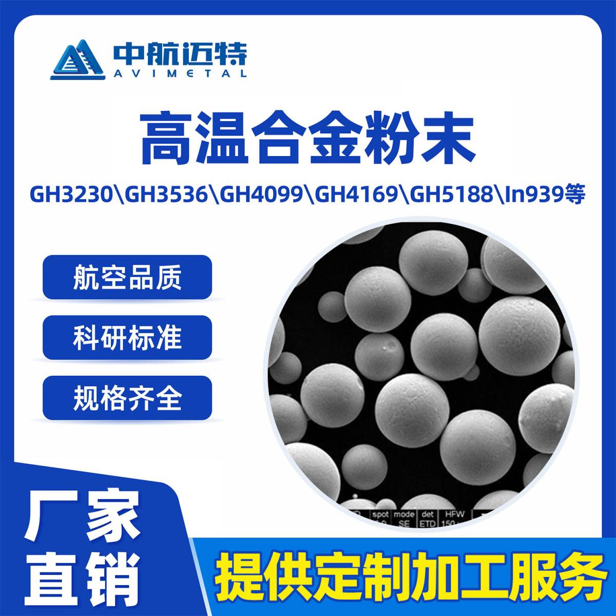 另提供M247、K438、M509、EP648、In939、镍基/钴基钎料等多种牌号粉末产品,成分与粒度可定制。