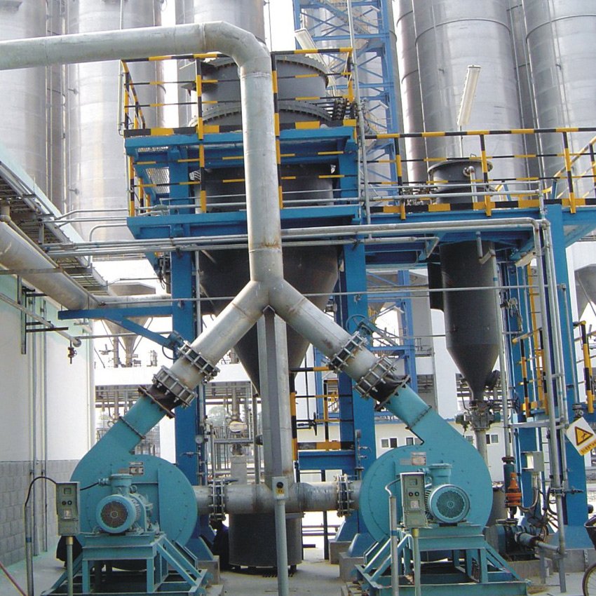 中央除尘系统是将分散在厂房各个部位的粉尘排放源,通过负压动力机械和管道系统抽吸集中到一个中央袋式过滤设备中进行粉尘收集,达到净化厂房环境和回收粉尘的目的。广泛应用于石油化工、电力、冶金、粮食等行业,如化工行业的散料上料、挤压造粒厂房、粉料包装厂房等。
