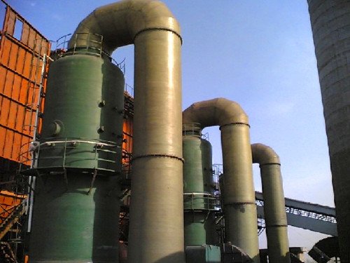 锅炉除尘器是锅炉及工业生产中常用的配套设备。它的功能是将锅炉燃料,燃烧排放烟气中的颗粒烟尘加以清除,从而大幅度降低排入大气层中的烟尘量,这是改善环境污染,提高空气质量的重要环保设备。烟气通过进烟道进入文丘里,在喉部的入口被水均匀的喷入,由于烟气高速运动,因此喷入的水被其融化成细小的水雾湿烟气中的灰料,这样,灰料与水滴就发生了碰撞凝聚,尤其是料径细小的灰尘料可以被水雾水溶。达到**次除尘和脱硫,这些为灰料的分离做好充分的准备,此后进入筒体,迅速降低温度的烟气继续冲击池内的石灰水,烟气中的粉尘和SO2与池中的石灰水反应生成硫酸盐,在惯性力、重力、附着力、凝聚力的作用下沉入水底完成第二次脱硫过程,被烟气激起的水花,水雾与洗涤后的烟气在风机引力下,气水同时抬开,使烟气与石灰水充分反应,然后经叶轮脱水器进行气水分离,水经泄水管流进水池,并使烟气完成第三次除尘与脱硫,净化后的气体经过风机排入大气。