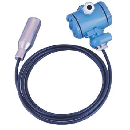 DW901系列静压式液位变送器由测量探头、接线盒和固定连接件三部分组成。采用投入式压力传感器探头沉入容器底部测量液位高度,液体静压力用公式P=Po+ρgh表示。其中Po为液面上部大气压,ρ为被测液体密度,H为液柱高度,g为重力加速度(常数)。为了消除液面上部大气压的影响,DW901变送器采用通心透气电缆设计方案,将PO导入传感器感压面背部,以抵消Po的影响。可见,传感器检测到的压力P与被测液位成线性关系。压力信号由单片集成V/I变送器转换成4~20mA DC输出信号,测量(记录)输出电流值大小,就可以测定液位的高度。当输出电流达到所设定的电流值时,通过选购件控制器,即可发出控制或报警信号。