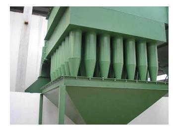 XD-II型多管旋风除尘器为旋风类除尘器,当含尘气体进入除尘器,通过陶瓷导向器,在旋风子内部高速旋转,在离心力的作用下,粉尘和气体分离,粉尘降落在集尘箱内,经放灰阀排出,净化的气体形成上升的旋流,通过排气管汇于集气室,经出口由烟囱排出,达到除尘效果。