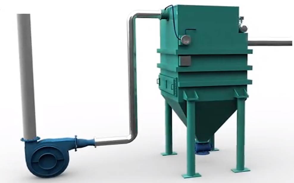 含尘气体由进气口进入灰斗或通过敞开法兰口进入滤袋室,含尘气体透过滤袋过滤为净气进入净气室,再经净气室排气口,由风机排走。粉尘积附再滤袋的外表面,且不断增加,使袋除尘器的阻力不断上升,为使设备阻力不超过1200Pa,袋除尘器能继续工作,需定期清除滤袋上的粉尘。清灰是由程序控制器定时顺序启动脉冲阀,使气包内压缩空气(0.5~0.7MPa),由喷吹管孔眼喷出(称一次风)通过文氏管诱导数倍于一次风的周围空气(称二次风)进入滤袋在瞬间急剧膨胀,并伴随着气流的反方向作用抖落粉尘,达到清灰的目的。