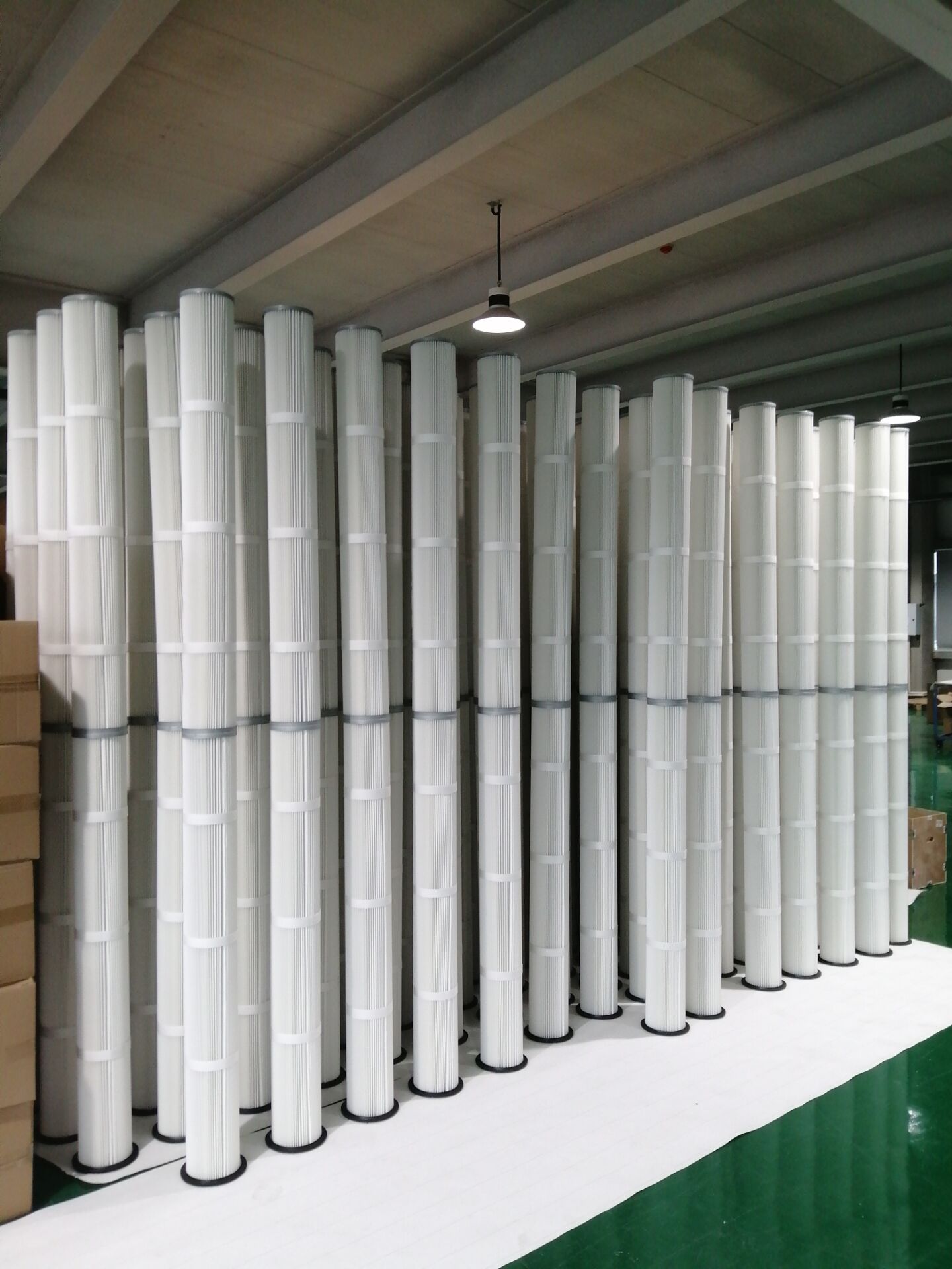 防静电耐高温折叠除尘滤筒高2.6米是由一定长度的滤料折叠成褶,首尾粘合而成的星形过滤筒。滤筒无笼骨,安装简便。防静电耐高温折叠除尘滤筒的品种较多,有细而长与粗而短之分。细长滤筒(如φ≤160,L=1~2m),其褶(如45褶)间空隙大、夹角大,褶少而浅,过滤面积比同径同长的滤袋大2~5倍,清灰易而效果好;适用于浓度≥15g/m粉尘的过滤除尘,过滤风速0.6~1.2m/min。粗短滤筒(如φ350,L=0.66m)直径大、长度短、褶多(120~350褶)而深、褶间空隙小,过滤面积大,较之同径同长滤袋面积大14~35倍,适于场地面积小、空间小的地方布置;但因褶角小,粉尘易积聚,难于清灰,适于浓度≤5g/m粉尘的过滤除尘,过滤风速不宜>0.6m/min。