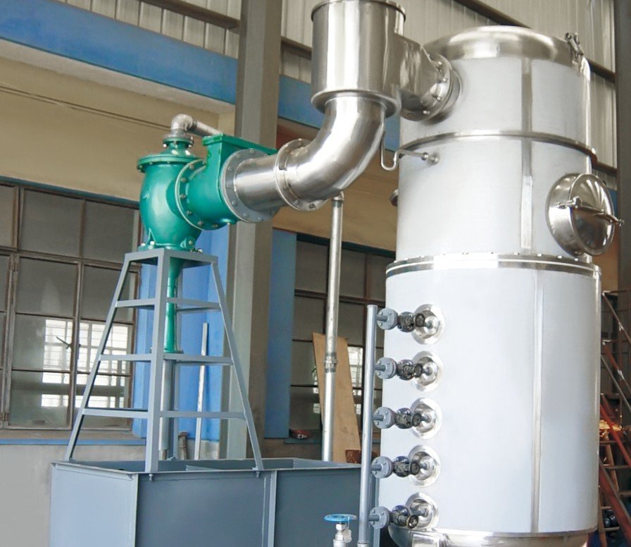 ●自然循环蒸发器的适用场合也范围很广,不同热敏性的溶液物料、较高粘度的溶液物料、各种浓缩比的溶液物料、含有少量固体物的溶液物料都可适用。