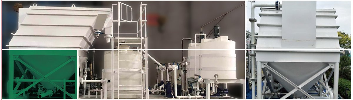 得益于斜板结构,污泥颗粒沉到底部的同时工艺水汇集到顶部。沉降到底部的污泥通过泵外排。