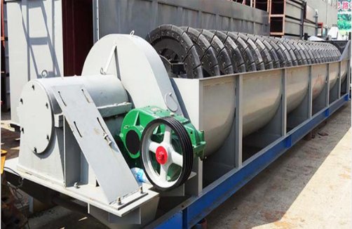 螺旋洗砂机转子采用中心结构,螺旋叶片安装在中心轴上,由减速器连接到中心轴上进行工作。借助固体颗粒的比重不同,因而在液体中沉降的速度不同的原理,进行机械分级的一种设备。