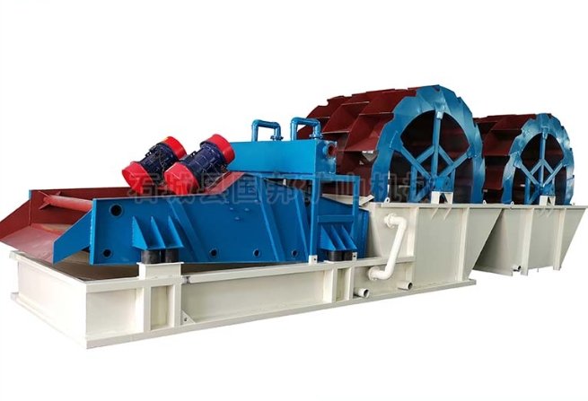 2、工作流程:砂水混合物进入清洗箱,由水轮分离机进行分离,然后进入下层脱水筛做脱水处理,清洗箱溢流出的废水(含大量细砂、泥浆、粉尘等杂质),经真空高压泵输送到高压分离器中,然后离心分级浓缩后的细沙,经沉沙嘴排入脱水筛上层,清洗箱内的废水、泥、粉尘、杂质等,通过高压分离器溢流口,排入高位返水箱后排出,上层出成品料粗砂,下层出成品料细砂,或粗、细砂混出(可根据客户要求做调整)。
