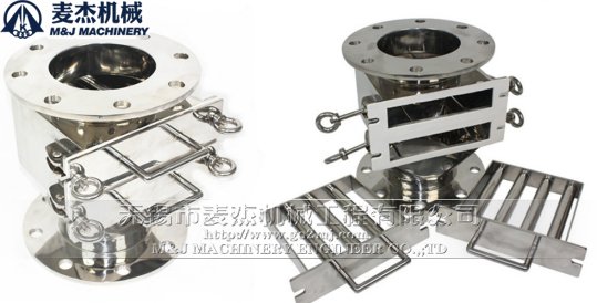 采用永磁技术,制成梳状磁筒以扩大磁场范围,对自由下落的粉状物料中的铁杂质进行多次筛选,并不断自动排除选出的铁杂质。能直接与雷蒙机、球磨机、振动磨、打散机等粉碎、分级设备连接,同步进行除铁。