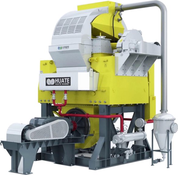 技术特点:6米特大型智能立环高梯度磁选机高11.8米,转环直径6米,重达700吨,背景场强高达1.8T。以鞍山式贫赤铁矿为例,干矿处理量达1300t/h;非金属矿以石英砂为例,干矿处理量高达800t/h,是3米立环高梯度磁选机处理量的8倍,吨矿处理能耗降低60%以上,大幅度降低了运行成本;吨矿产出占地空间小,工艺布置简单,可节省工程投入30%以上。满足了千万吨级大型矿山企业对特大型装备的需求。